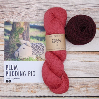 Includes 100g of MC, 50g of CC1 in Eden DK, pattern and two wooden buttons.