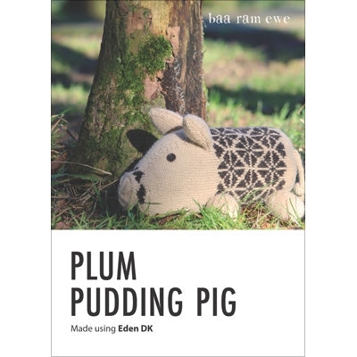 This piggy is knit from the snout to his bottom with panels of colourwork knit between the shaped sections. Plum Pudding Pig is inspired by the Oxford Sandy and Black, a hardy outdoor breed with patches of black colouring and a gentle temperament.